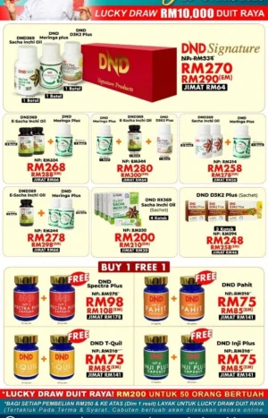 PROMOSI RAYA DND DILANJUTKAN SEHINGGA 29 APRIL 2026. LUCKY DRAW RM10,000 DUIT RAYA. BAGI SETIAP PEMBELIAN RM250 & KE ATAS (DALAM 1 RESIT)LAYAK UNTUK LUCKY DRAW DUIT RAYA**
