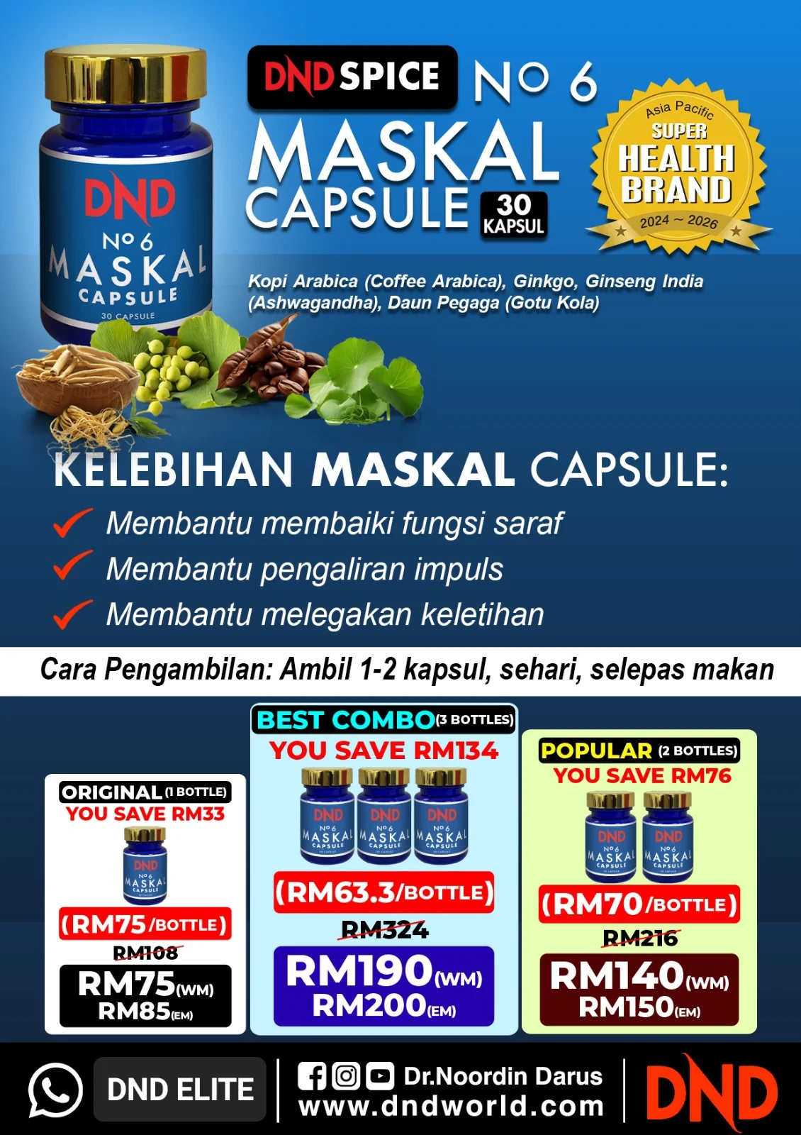 ORIGINAL : 2 BOTOL : DND NO.6 MASKAL (30 CAP) – DND SPICE.