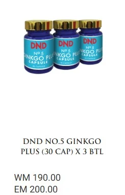 ORIGINAL : 3 BOTOL : DND NO.5 GINKGO PLUS (30 CAP) – DND SPICE.