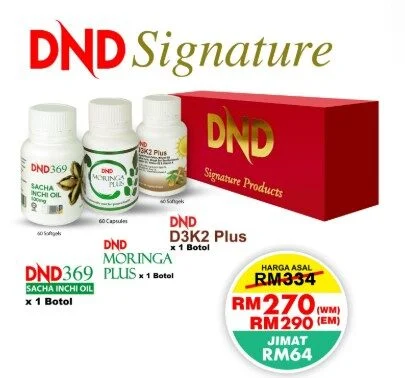 ORIGINAL :DND SIGNATURE: WELLNESS PACKAGE (1 BOTOL DND369 SIO SOFTGEL + 1 BOTOL DND MORINGA PLUS + 1 BOTOL DND D3K2 PLUS SOFTGEL)